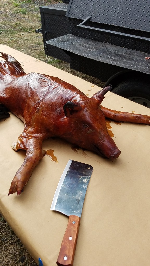 $500 plus cost of pig, extra meats and sides at additional cost, minimum of 40 people.